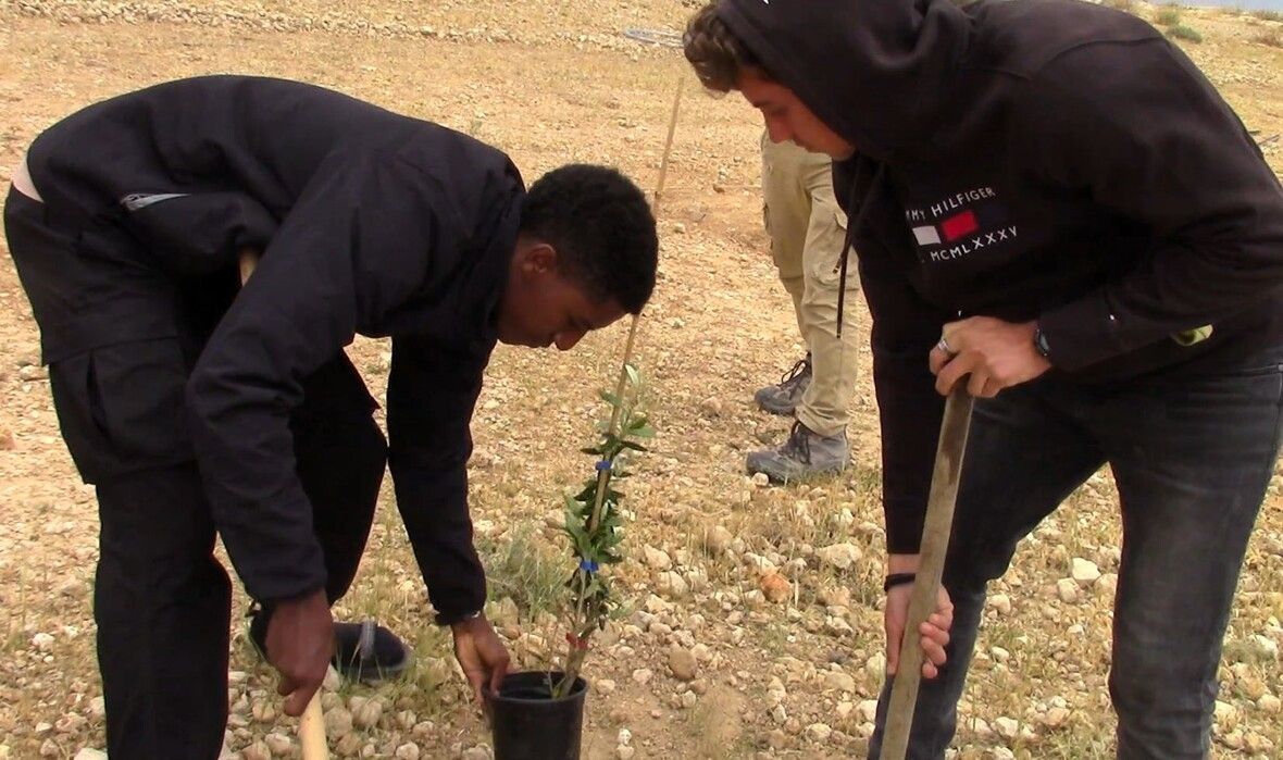An international group of tourists came to Israel. Together they donated an orchard of trees and came to help plant some of them with their own two hands in