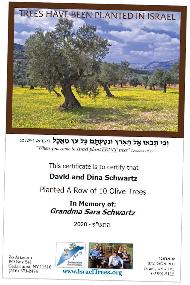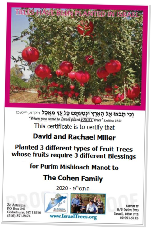 Order some FRUIT Trees NOW and we will email you a PDF of the "Purim Certificate" NOW to give or email for Mishloach Manot!