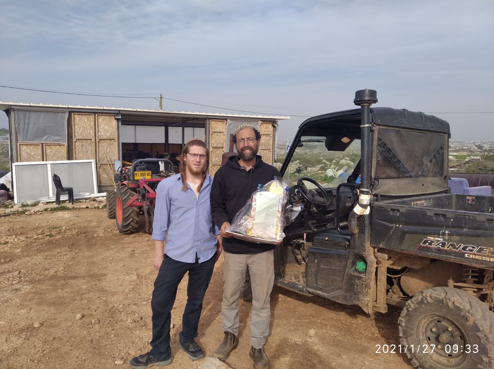 Naftali Lipshits was the Yeshiva coordinator and helped put together some beautiful packages and to deliver it to over 70 different small farms all over the Shomron (Samaria). They are called Havot (farms).