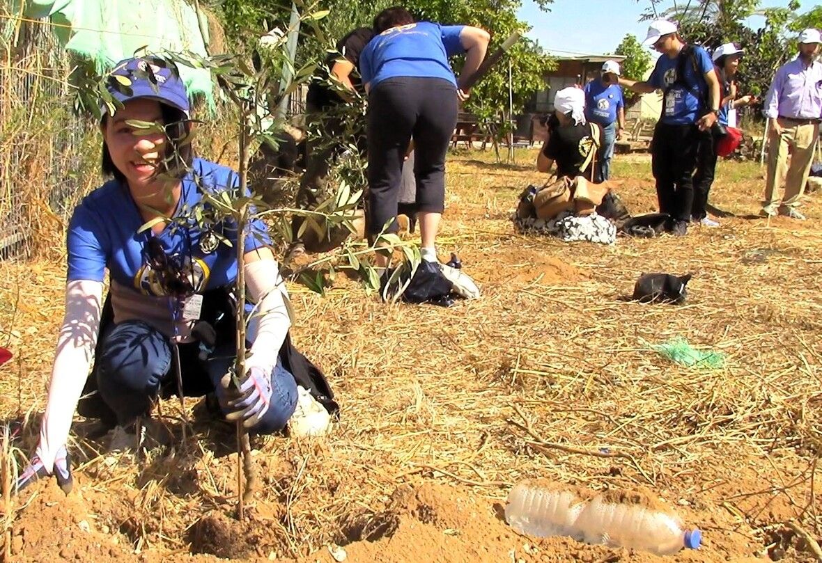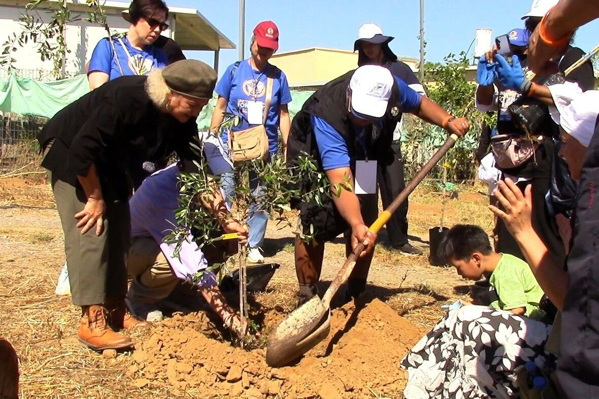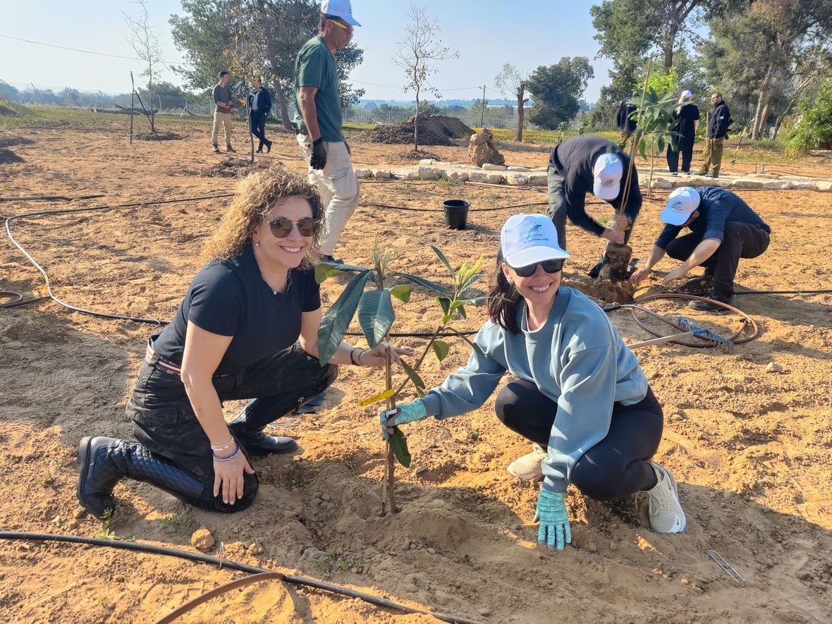 An international group of tourists came to Israel. Together they donated an orchard of trees and came to help plant some of them with their own two hands in