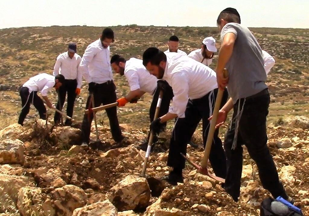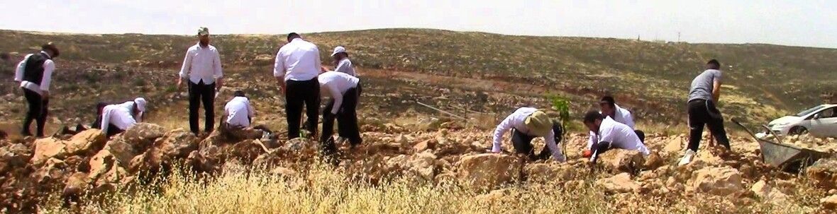 Kochav Hashachar. This is the first Chariedi settlement in the Benjamin region. The Chareidi community are not so familiar with agriculture and building new settlements, but these fine young men came from Jerusalem, Beit Shemesh and other parts of the country to roll up their sleeves and connect to the land of Israel in a very real and physical way. Most of them came wearing black dress pants, white shirts and Tzizit sticking out, some even wearing Tefillin while planting! It was an honor to donate trees to this new Young settlement. We look forward to seeing it grow in the future.