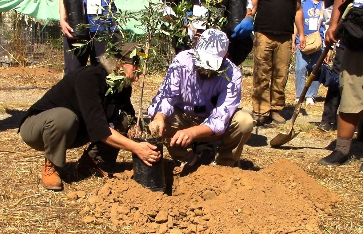 Jonathan Pollard planting a tree in memory of his late wife Esther a"h